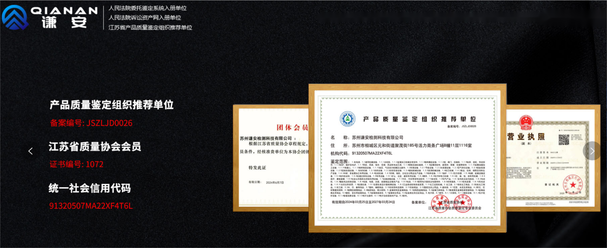 旗下机构谦安检测,入围人民法院委托鉴定系统及各地仲裁委员会名册目录,接受司法机关、仲裁机构、行政管理部门委托,提供从案件委托、组织鉴定到出具报告的全流程高效鉴定服务。